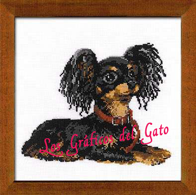 Bonito gráfico de un chihuahua negro de pelo largo...