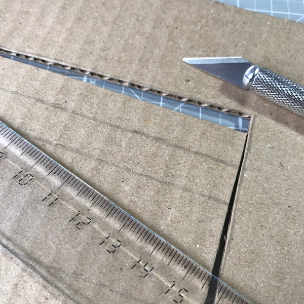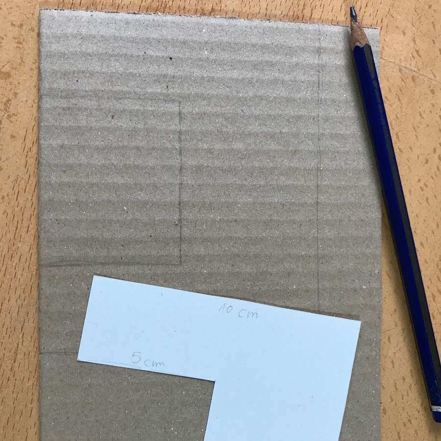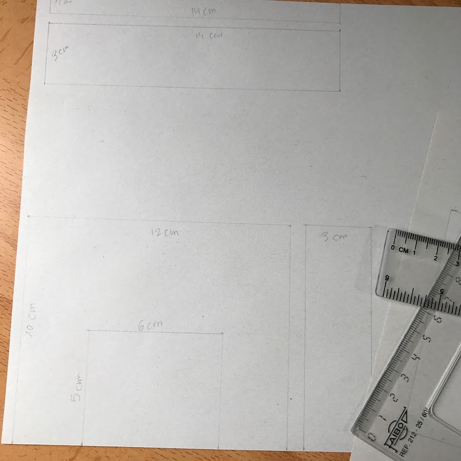 Trazo las plantillas recortadas sobre cartón, todas las piezas que necesito, y después las corto con un cutter y regla.