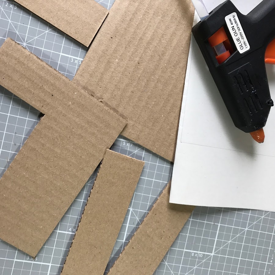 La silicona caliente es tu mejor amiga cuando haces muebles de cartón, con mucha paciencia ve pegando todas las piezas recortadas.