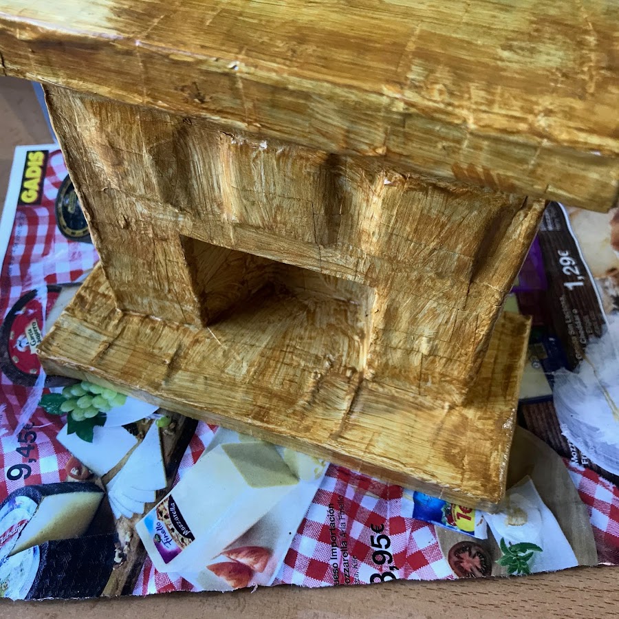 Ahora llega el momento de pintar, yo primero le di una base blanca para unificar todo y después intenté darle un aspecto de madera envejecida.