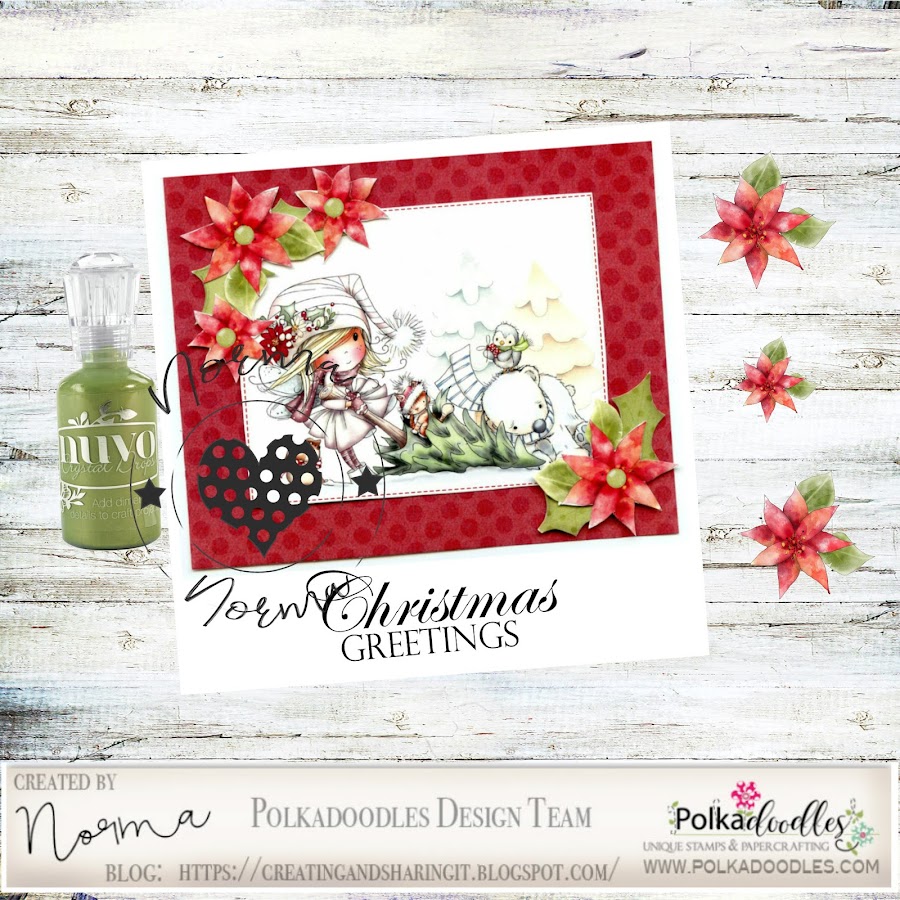 So, this is my first Christmas card for the season and to make it I use the Winnie White Christmas collection. The paper, image, flowers and sentiment are part of it.