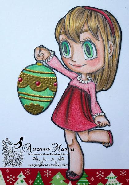 This week I made a Christmas card with this cute image that is a clear stamp by Some Odd Girl. I"ve coloured her with Polychromos, to try my new skin tones. And I"m quite happy with it.