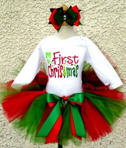 Este outfit es encantador con ese tutu de colores navideños y el moño precioso.
