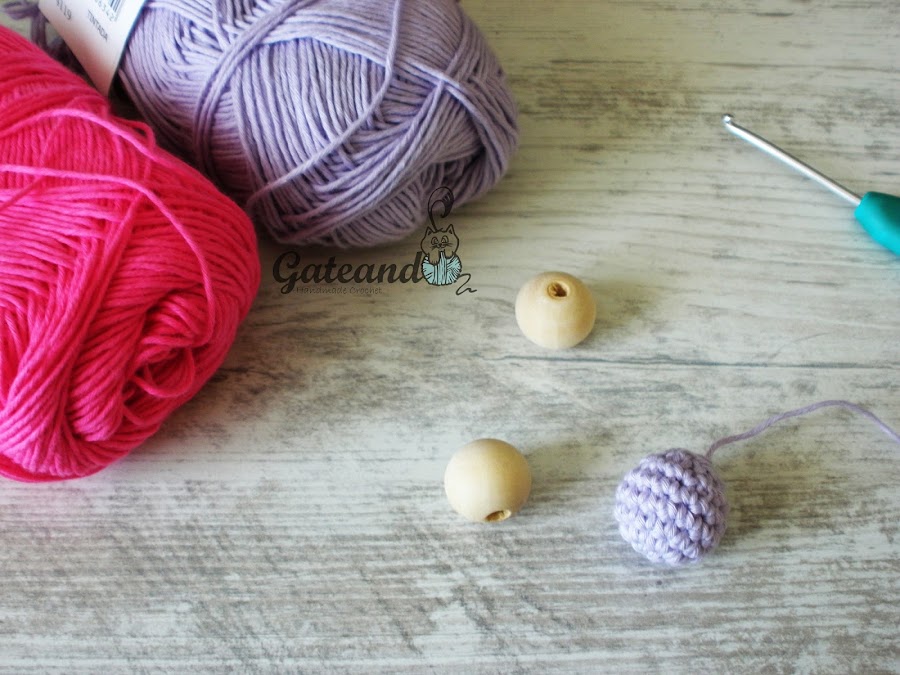 El forro de las bolitas de madera se va tejiendo en espiral como los amigurumi: anillo mágico de 6 p.b., aumento en todos los p.b. (12), repetir hasta que abarques la anchura de la bolita de madera que vayas a utilizar, luego levantar una o dos vueltas sin aumentos y finalmente ir disminuyendo siguiendo la misma progresión hasta que la cubras la bola por completo.