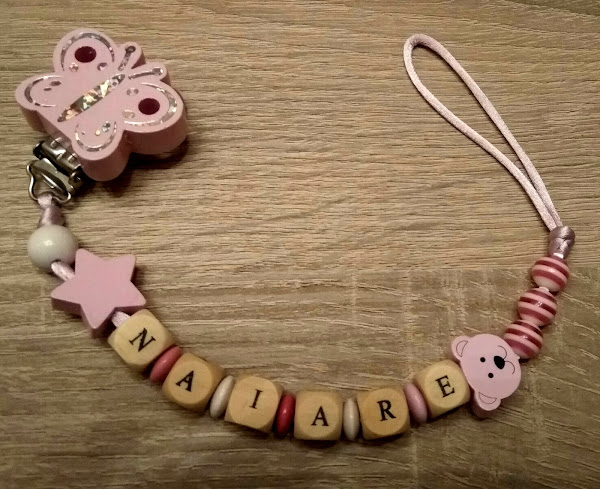 Aquí tenéis otro ejemplo más de un chupetero infantil. Esta vez el más especial que he hecho porque no es para regalar, sino para mi ;-)