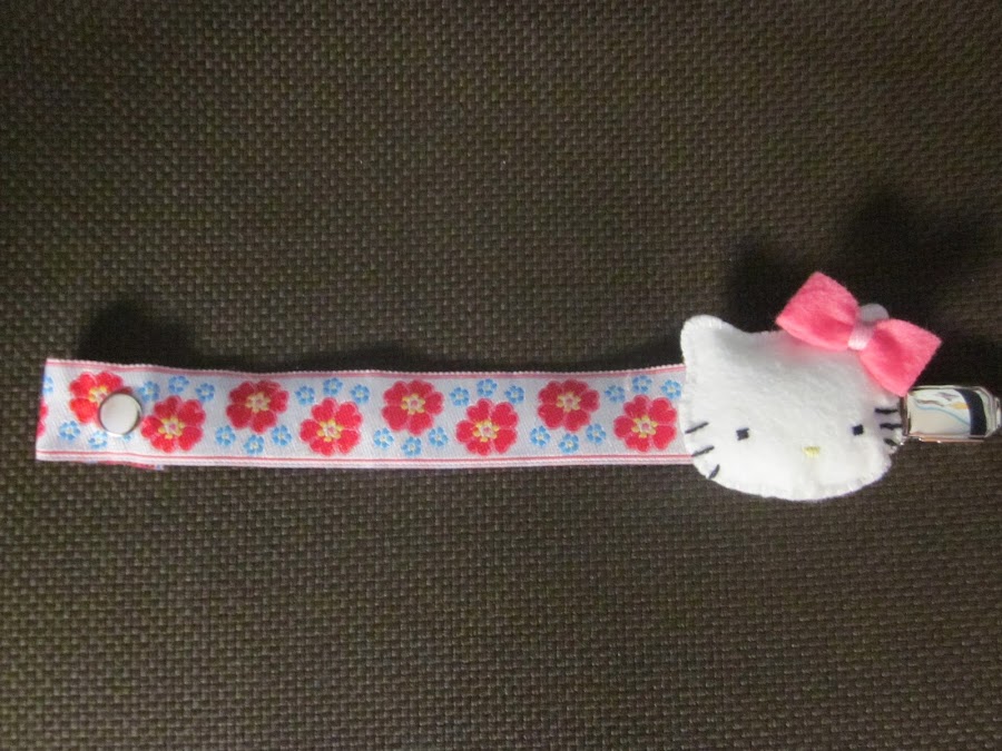 Y aquí os dejo mi tercer chupetero. Esta vez es para una niña y que mejor que poner a Kitty!!Dentro de poco pondré más cositas que estoy animada =)