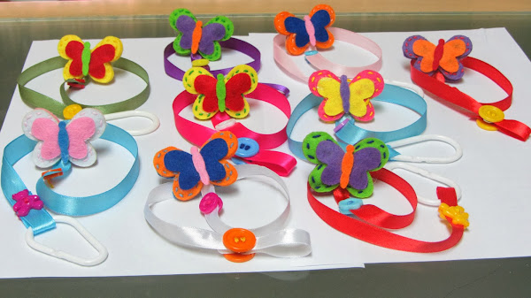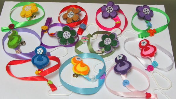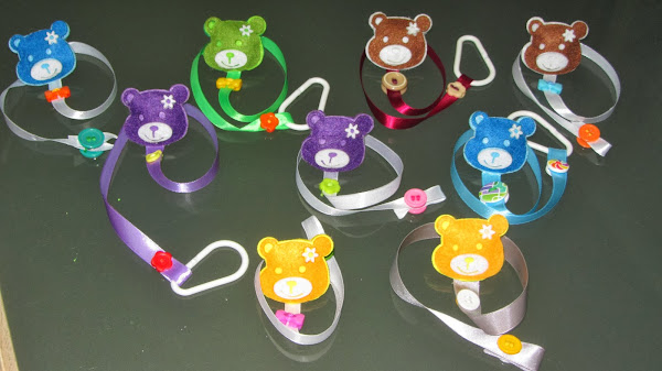 Bueno, pues como quería hacerles un regalo especial, gracias a youtube encontré a cosasmaribel (que es de quién le he cogido la idea) y bueno pues me puse a ello, así que aquí os dejo todos los chupeteros que he hecho.