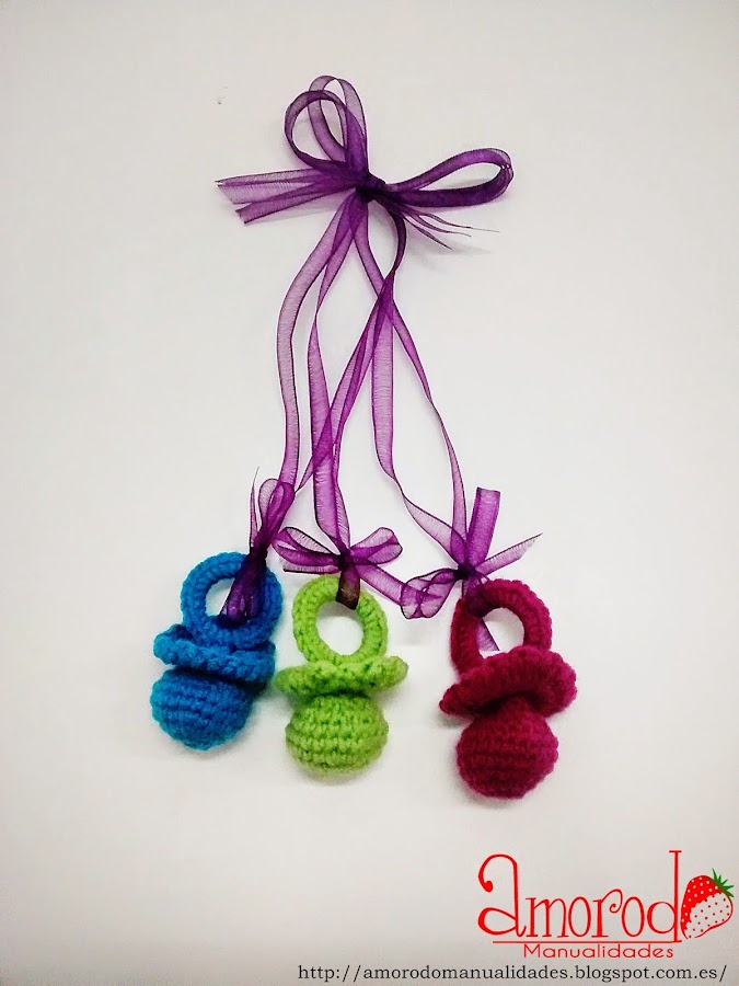Aunque no tengo mucha soltura con el ganchillo, me atrevo con algunas cositas. Espero que os gusten!!! Os dejo más muestras de chupes, esta vez lo he utilizado como llavero Aquí os dejo muestra de estos chupes, creados como detalles simbólico para regalar o para entragar como recordatorio de baby shower o bautizo. Estos fantásticos chupetes, se pueden lucir como adorno en el cochecito ...