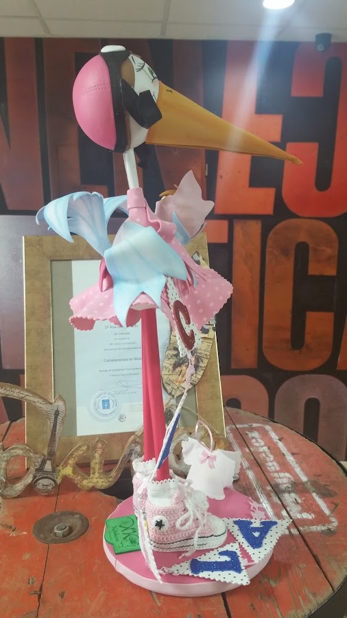 Esta cigueña tan linda la hice hace mucho tiempo para un bautizo y me pareció super divertida con el bebé debajo del ala.