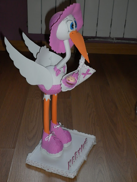 Esta cigueña es un encargo que me han hecho para una niña que está en camino a la que van a llamar Martina. Espero que a la mamá le guste.