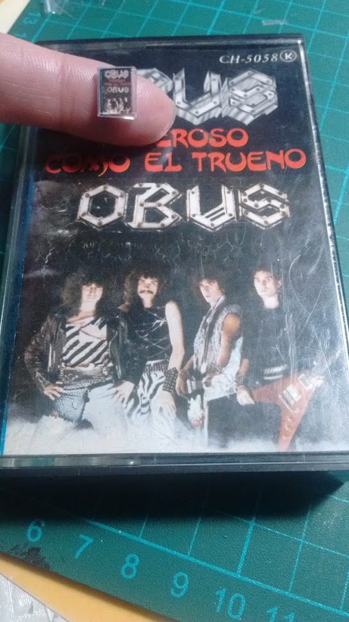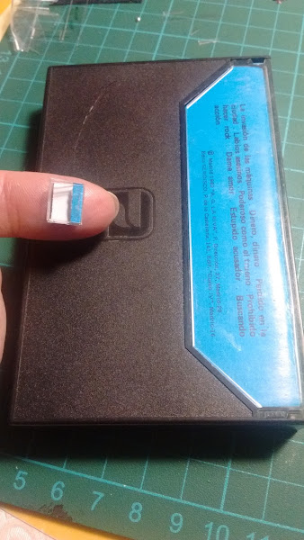 Y aquí el frontal de la cinta fotografiada y también reducida, va a ir colocada sobre otras dos, así que hice foto también de ellas tumbadas y lo he pegado todo a cartón, para que se vea como que hay más cintas, pero eso ya cuando esté colocado jejeje.