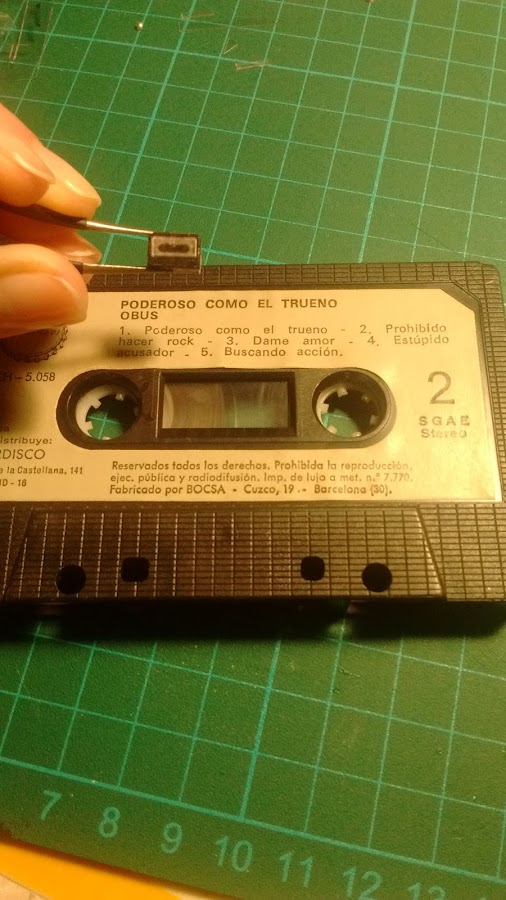 Después de escanear y reducir la carátula de mi cinta original, hice la caja con un plástico finito, saqué las medidas e hice un patrón para después cortar en el plástico y voila !!! ( es transparente, pero no tengo plástico negro, así que como muchas eran así, pues así se queda jajaja )