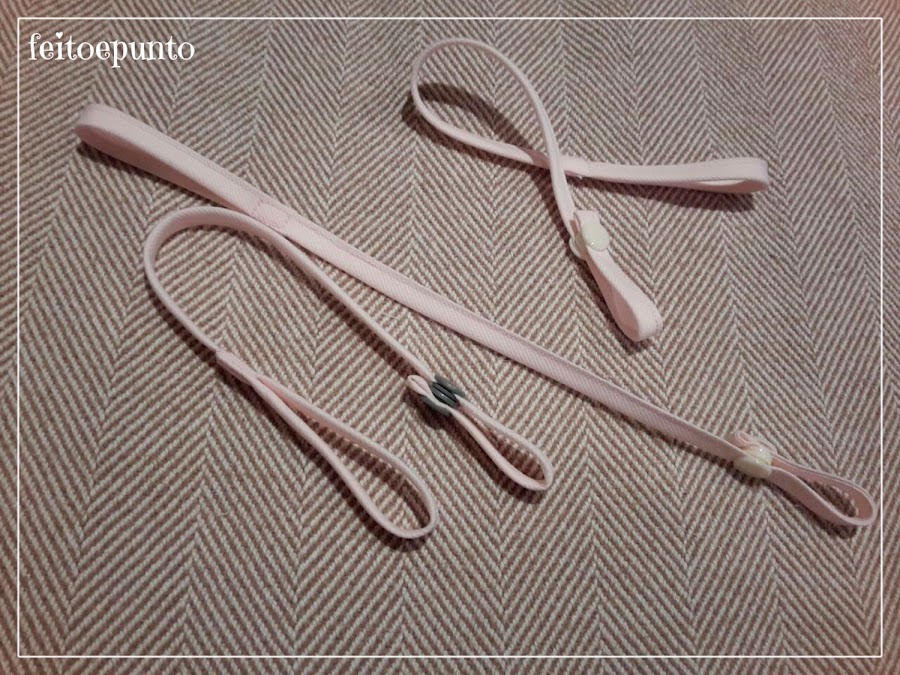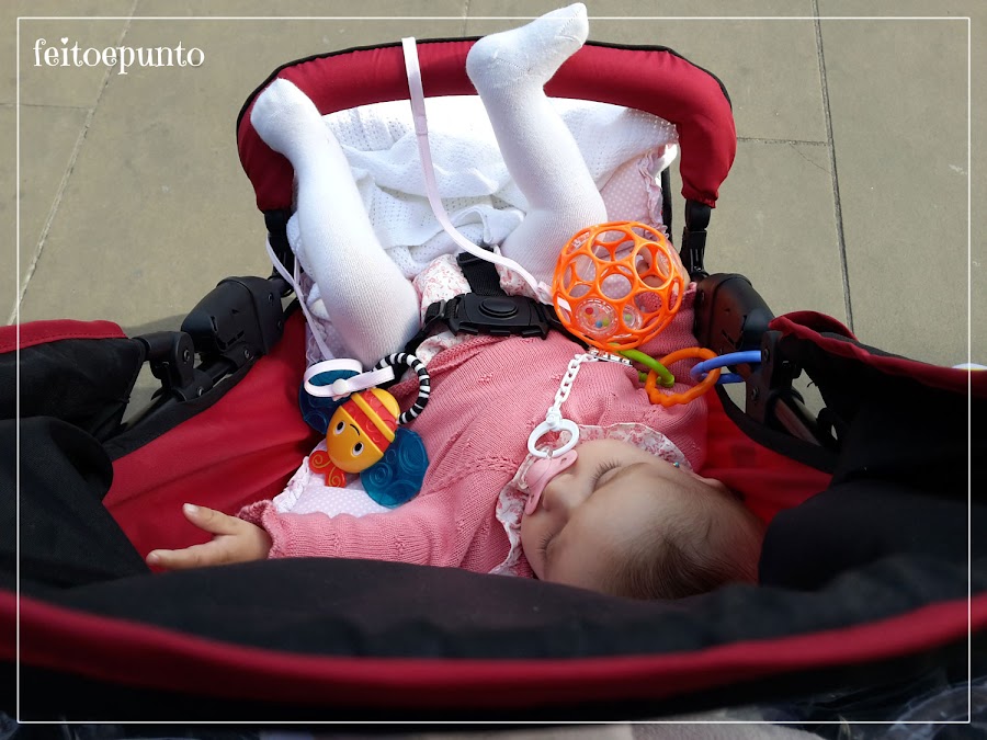 Ya veis las fotos de la niña, tenía 5 meses cuando las hice, en una escapada a Londres; y para ese viaje cosí estas cintas para sujetarle alguna cosilla a la silla y no perder los pocos juguetes que llevábamos.