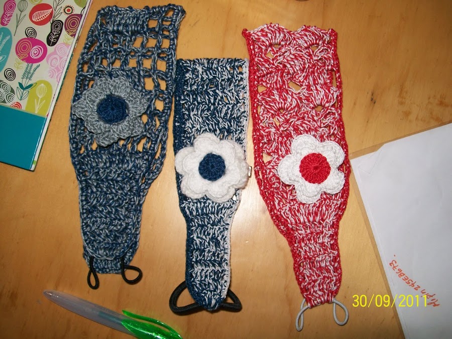 Esta bandana la realice en punto vareta Esta la hice igual pero tiene en el borde unos abalorios. Y por ultimo a esta le realice un corazón en el triangulo Las bandanas las hice para mis nietas con lana que tenia de otros trabajos, espero les guste