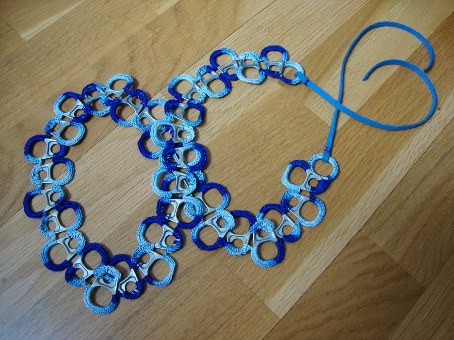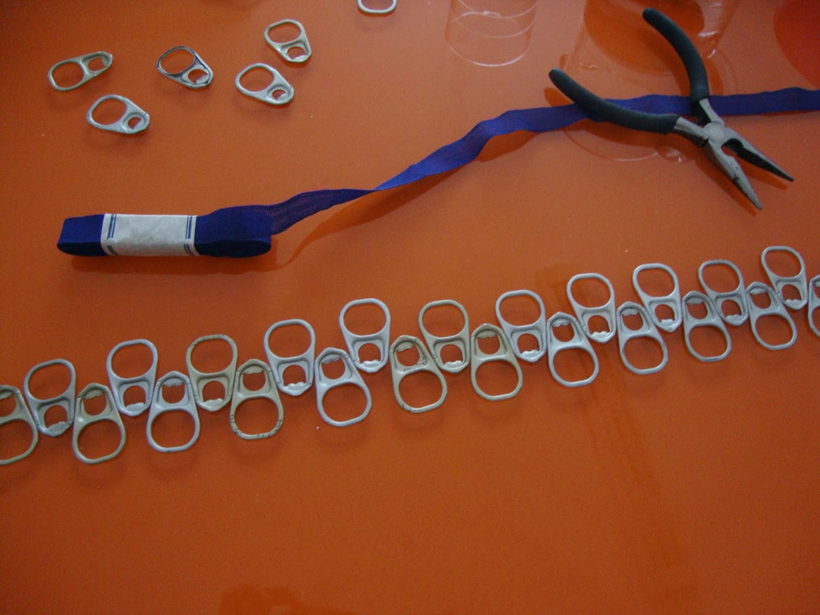 Primero estuve durante bastante tiempo juntando arandelas de igual tamaño y forma, porque varían según las latas y se nota en el resultado.