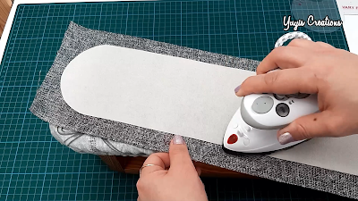 Este material se pega con la plancha a la maxima temperatura que admita tu tela y sin vapor, llevando el lado del pegamento hacia el revés de la tela. Una vez pegada la entretela, cortamos el sobrante de tela y cosemos la otra pieza de tela por el otro lado. El resultado te lo muestro en la siguiente foto: