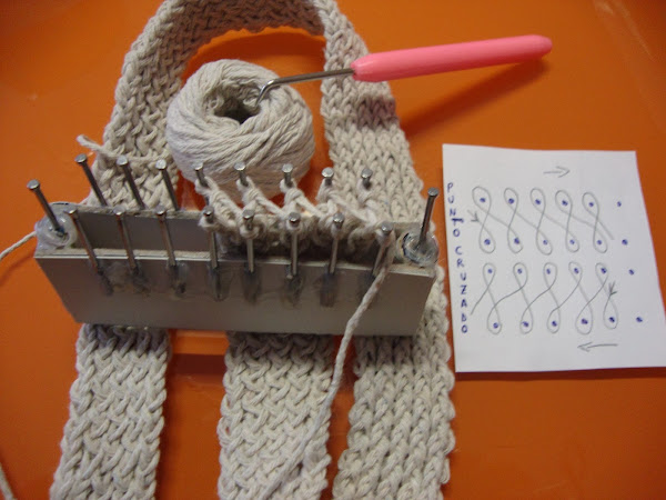 En la foto podéis ver el apaño y el esquema del tejido que empleé "PUNTO CRUZADO".