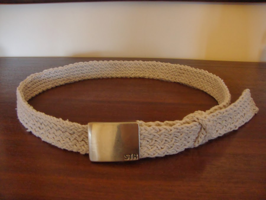 El cinturón se completa con una presilla que tejí con una cadeneta doble de ganchillo (la hice más y le di 2 vueltas, cosiéndola formando una X) y su correspondiente hebilla que podemos comprar para la ocasión o reciclar de un cinturón gastado como hice yo.