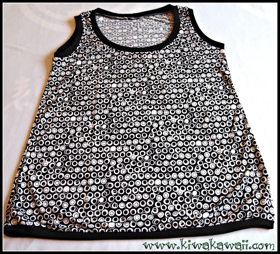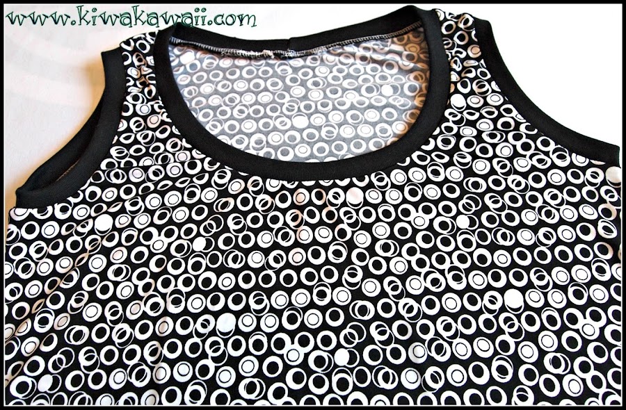 Bien fresquita para el verano y con un tacto muy agradable, con una tela súper chula regalo de una buena amiga. Rematada con puño negro y cosida íntegramente con la over, que mi máquina plana está pachucha y creo que tengo que llevarla al médico.