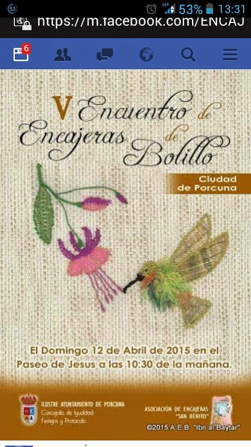 El sábado tenemos encuentro de bolillos en Lorca -Murcia (cuentan con 11 asociaciones de bolilleras además de las visitantes); Granollers (Barcelona) y Algeciras (Cadiz)