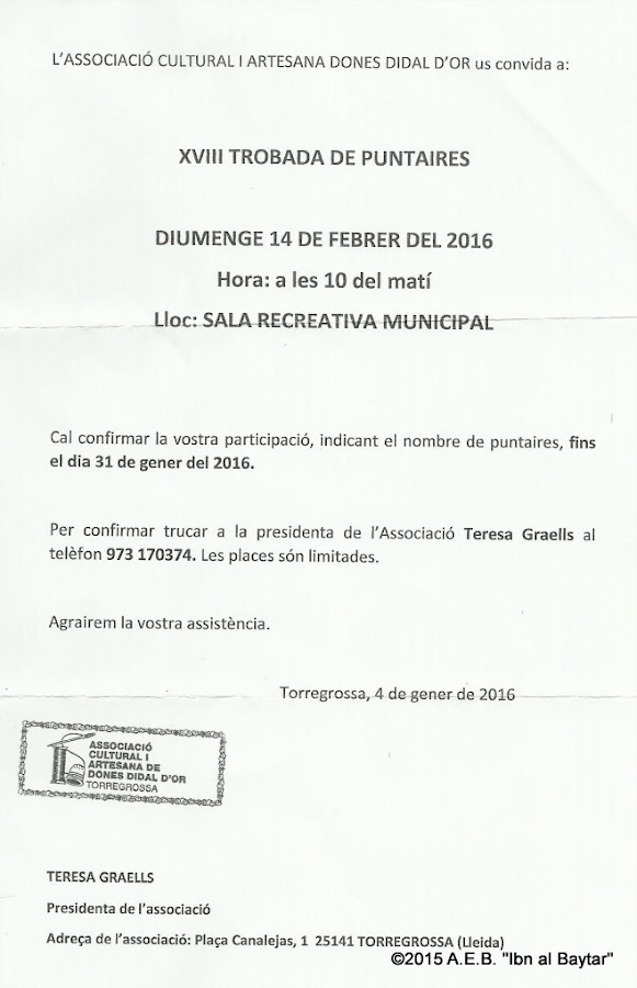 Entre todas las actividades destacamos la trobada de puntaires (encuentro de bolilleras) el domingo 14 a partir de las 11 de la mañana en la calle dels Arcs i Portal de lAngel (calle de los arcos y portal del ángel)