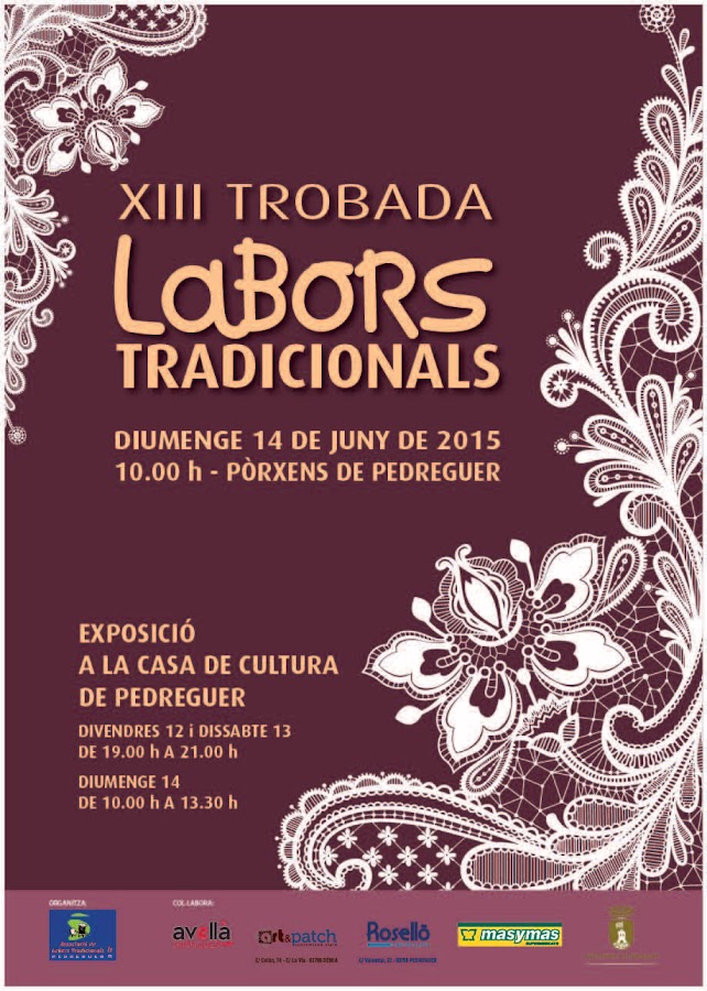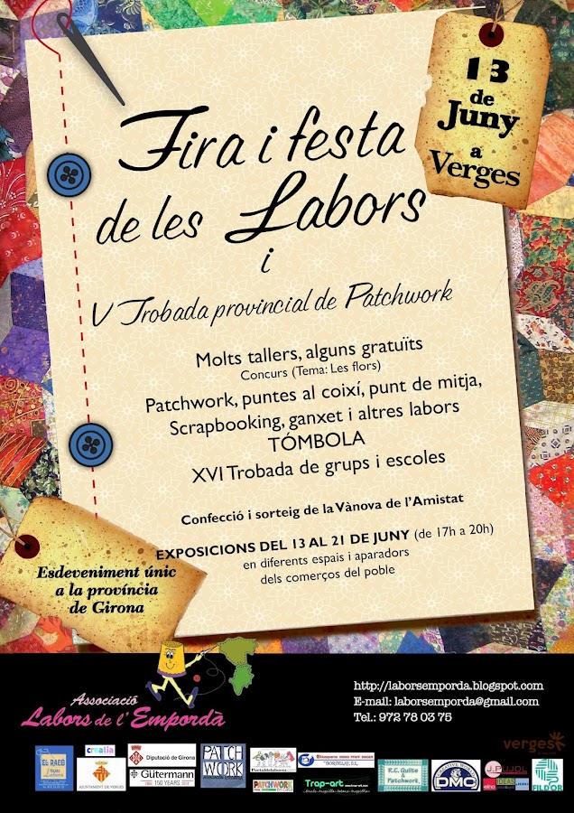 Empezamos con la "Feria y fiesta de las labores" que tendrá lugar en Verges (Gerona) del 13 al 21 de junio. Talleres, exposiciones... y muchas mas cosas se podrán ver y hacer, incluido el encuentro de bolillos el sábado.