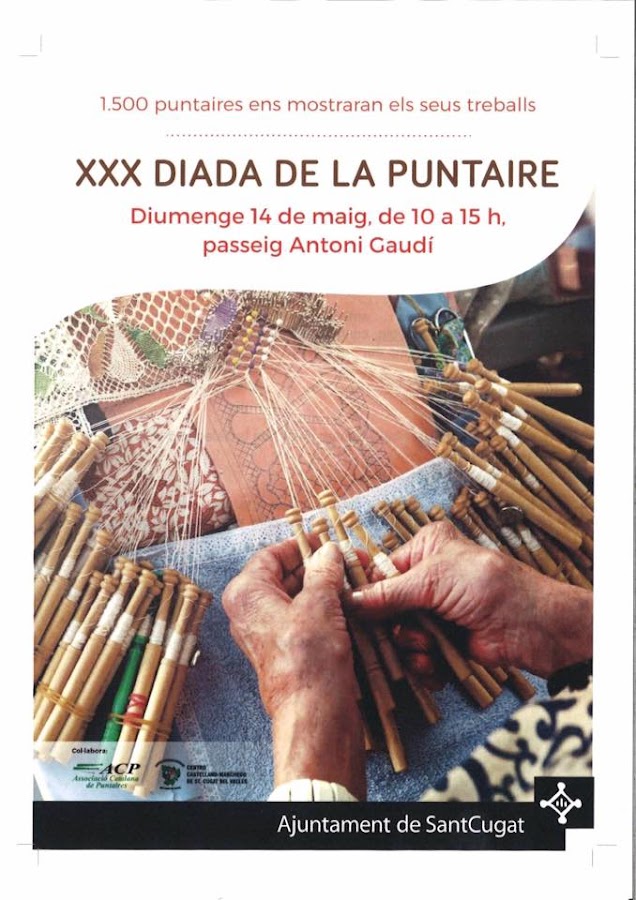 El domingo tendrá lugar en Sant Cugat (Barcelona) la XXX edición de la Diada de puntaires (Día de las encajeras). Cada año se realiza en un lugar diferente dentro del territorio catalán. Tuve la oportunidad de visitar la edición que se celebró en Tarrasa y os puedo decir que fue inolvidable.