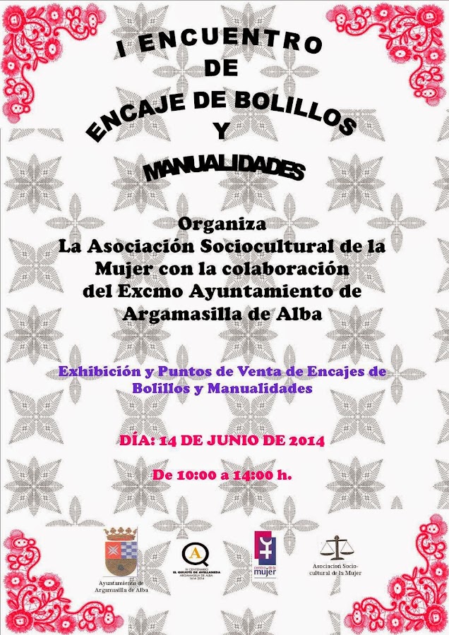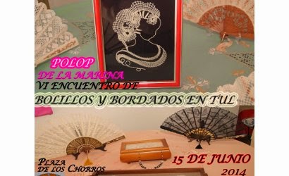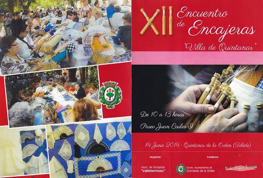 Y en lo referente a los encuentros de bolillos, empezamos por Parla (Madrid) que desde el 13 al 21 celebran sus tradicionales fiestas del agua y una de las actividades es el encuentro de encaje de bolillos del sábado en el bulevar Sur. Y no es el único, ya que el sábado también hay encuentro de bolillos en: Simancas (Valladolid); San Martin de la Vega (Madrid); Fustiñana (Navarra); Ubeda (Jaén); Tarazona (Zaragoza); Quintanar de la orden (Toledo); Balazote (Albacete); Granollers (Barcelona) y Brihuega (Guadalajara).
