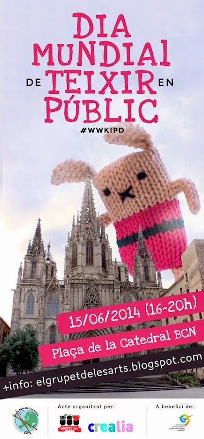 El domingo Crealia organiza el día mundial de tejer en publico en la Plaça de la catedral de Barcelona.