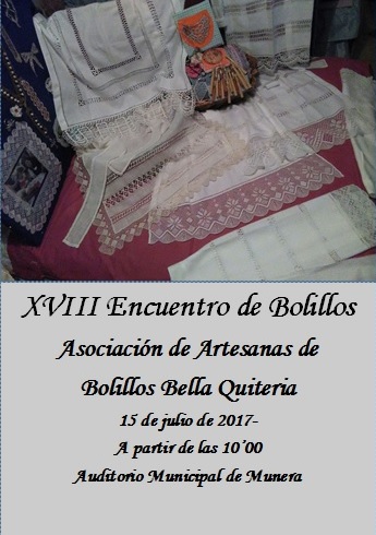 El sábado se podrá ver a las encajeras reunidas en Munera (Albacete) y Llagostera (Gerona). En esta última el encuentro de bolilleras forma parte de las actividades programadas con motivo de la celebración de su "Fira del Batre". Pinchando AQUI podréis consultar todas las actividades.