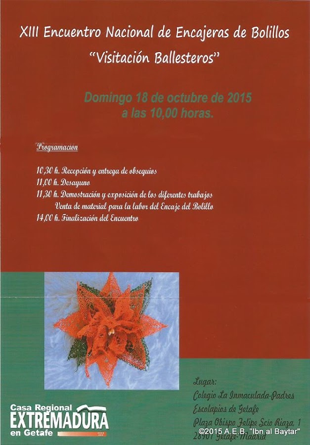 También hay encuentro de bolillos el sábado en: Torre Pacheco (Albacete); Albacete; Alcobendas (Madrid) y Mislata (Valencia)