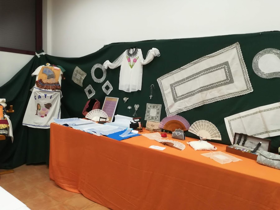 Este año la exposición del taller de encaje de bolillos compartimos sala con el taller de costura que se ha iniciado este curso con muchas ganas e ilusión.