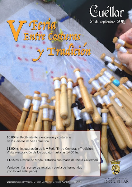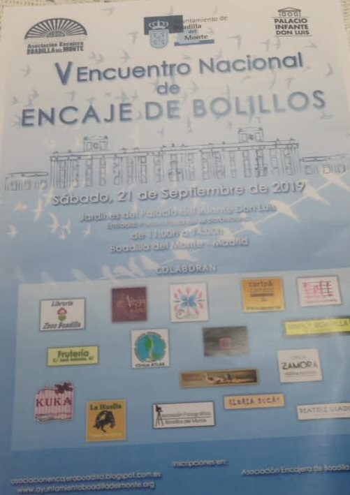 El sábado las encajeras bolilleras se reuniran en: Boadilla del monte (Madrid); Cuellar (Segovia); Puerto Llano (Ciudad Real) (Crevillente (Alicante); Barcelona (Paseo Sant Joan); Esplugues de Llobregat (Barcelona); Cervelló (Barcelona) y Lorezana (Leon)