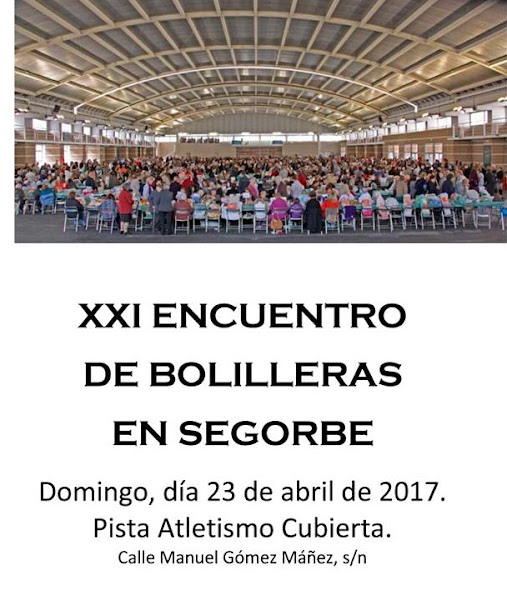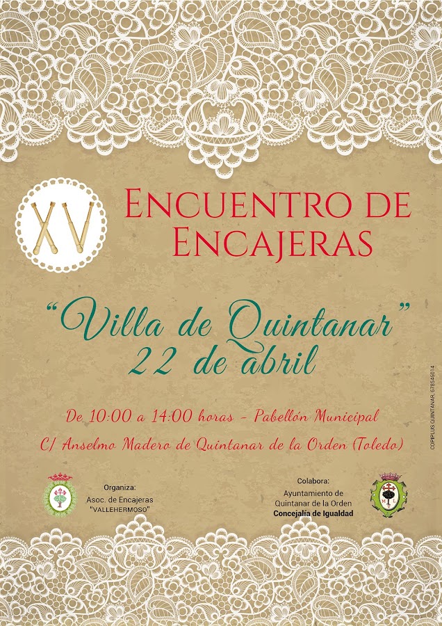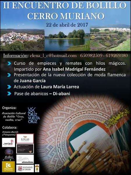 También el sábado día 22 de abril se reunirán las encajeras de bolillos en: Cerro Muriano (Cordoba); Higuera de la Serena (Badajoz); Quintanar de la orden (Toledo); Valmomado (Toledo); Vallecas (Madrid); Balazote (Albacete) y Mondejar (Guadalajara)