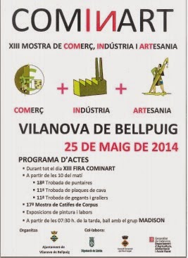El domingo en Vilanova de Bellpuig (Lerida) se celebrá la XIII Feria de comercio, industria, artesania y agricultura local (COMINART) y además del encuentro de bolillos también se podra disfrutar de: gigantes y cabezudos (gegants i grallers); exposición de pinturas y labores; y muchas cosas mas.