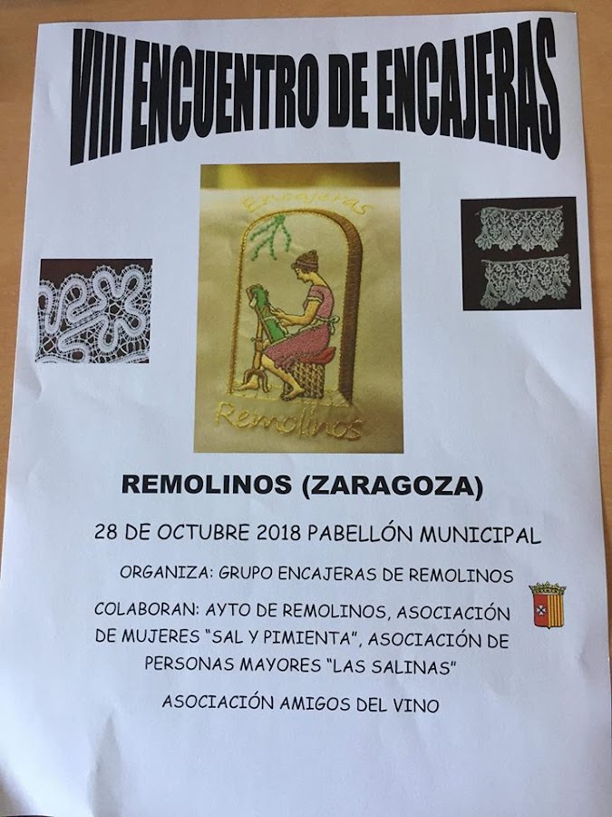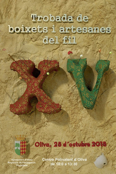 Hay días que me gustaría poder partirme para estar en varios sitios a la vez, pero como eso es imposible y hay que decidir, el domingo participare como encajera en el encuentro de bolillos de Oliva (Valencia). Para mi es uno de los encuentros de obligada asistencia porque a el acuden muchas amigas "bolilleras internautas" de otras provincias e incluso países. Amigas que por la distancia es difícil conocer en persona pero que la vida cruza nuestros caminos en un momento determinado que no podemos dejar pasar.