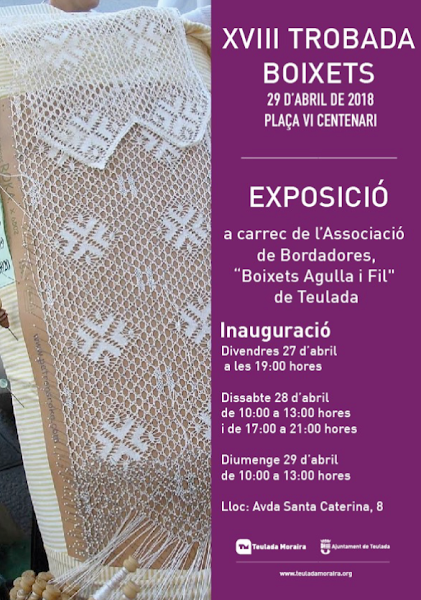 Desde hoy hasta el domingo en Arenys de mar ( Barcelona) se celebra la 4º edición de la Fira Internacional de puntes (Feria Internacional del encaje) durante la cual se podrán realizar cursos, comprar productos y muchas cosas mas.