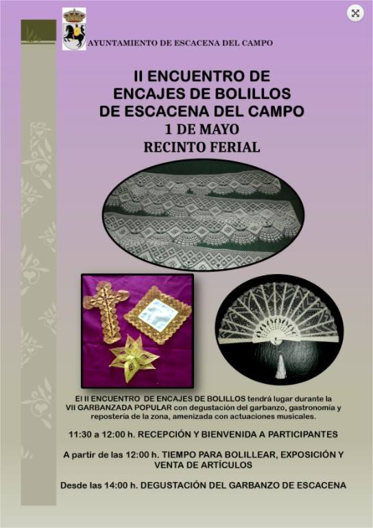En Hoya Gonzalo (Albacete) del 27 de abril al 1 de mayo, celebran sus fiestas en honor a San Pedro Mártir de Verona, y además de un variado numero de actividades que se realizaran el sábado esta el encuentro de encaje de bolillos. Pinchando AQUI podréis ver mas información sobre todas las actividades.