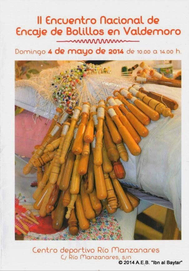 Yo por mi parte tengo previsto participar en el I Encuentro de bolillos que se celebrara el domingo 4 de mayo en Orxeta (Alicante), pero eso sera el domingo. Empecemos por el sábado que se celebraran encuentros de bolillos en: Mijas (Malaga), Sóller (Islas Baleares); Almuñecar (Granada); Piera (Barcelona)