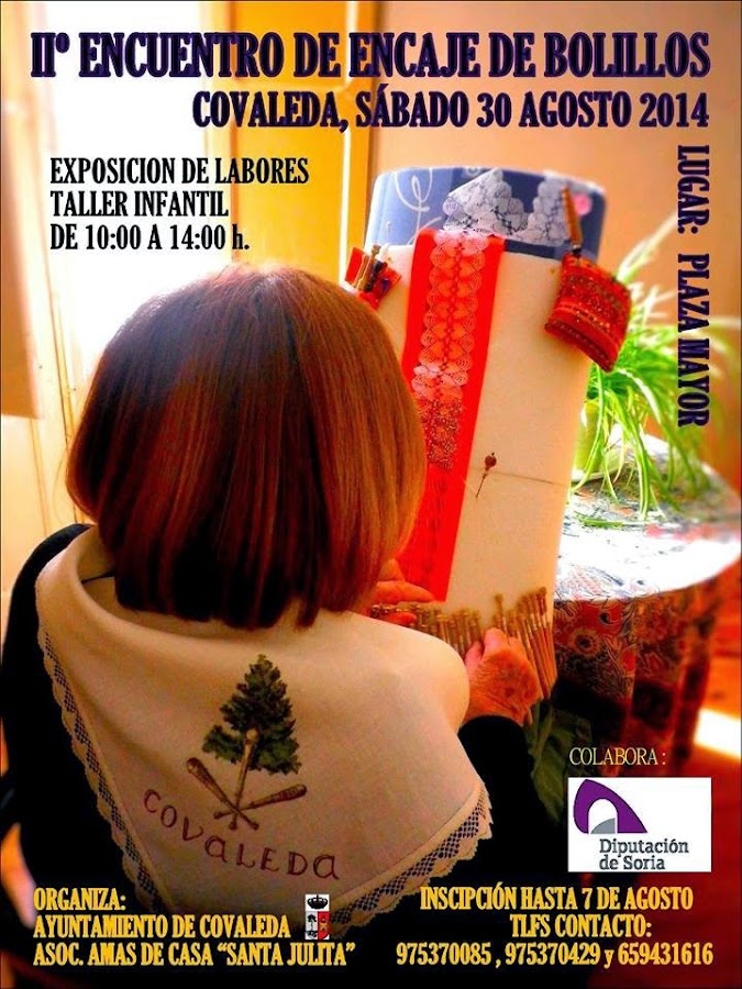 En Valga (Pontevedra) también hay encuentro de bolillos y me llama particularmente la atención porque forma parte de las actividades de celebración de la XXIV Festa da Anguía e Mostra da Caña do País. Traducido mas o menos como Fiesta de la anguila y muestra de Caño de País. Lamento deciros que no he encontrado mas información, pero si podéis ver todos los actos que se van a celebrar si pincháis el enlace. Seguro que es divertida.