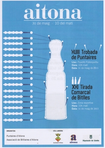 El domingo las encajeras se reunirán en: Sariñena (Huesca); Hinojosa del duque (Cordoba); Tarrega (Lerida); Vilanova de Bellpuig (Lerida); Aitona (Lerida); Balaguer (Lerida); Estella (Navarra); Higueruela (Albacete); Corbera de Llobregat (Barcelona); Castelllterçol (Barcelona); Sant Cebria de Vallalta (Barcelona); Sant Fliu de Guixols (Gerona); La Fatarella (Tarragona); Salou (Tarragona); Alcala de Xivert (Castellon); La Guardia (Toledo) y Cabanes (Castellon)