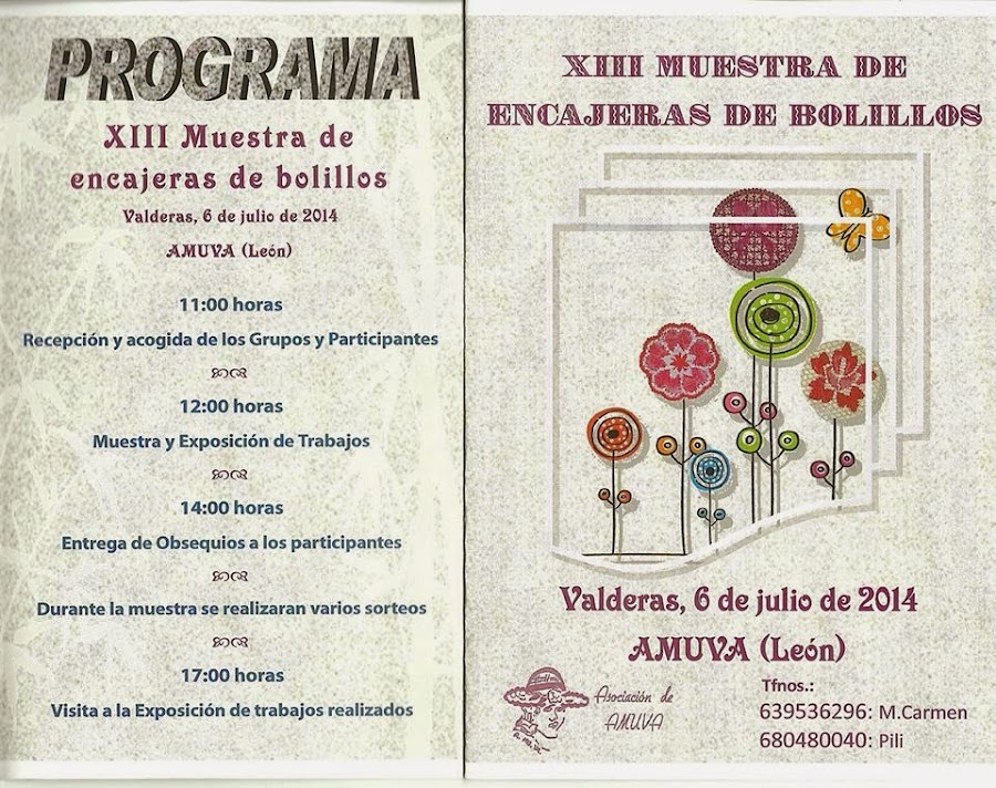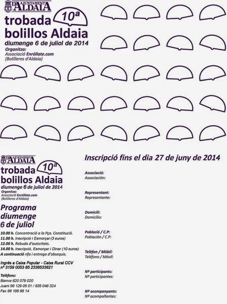 Para el domingo 6 de julio también tendremos oportunidad de disfrutar del encaje de bolillos en los encuentros de: Aldaia (Valencia); Amuva (Leon) y Bañeres de Mariola (Alicante). En este último participo así que os lo podré contar.