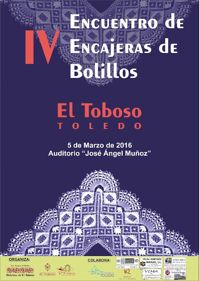 Empezamos el sábado con el encuentro de bolillos de El Toboso (Toledo). Organizado por la asociación de encajeras Dulcinea del Toboso y el Ayuntamiento, tendrá lugar en el auditorio Jose Angel Muñoz. En este enlace podréis encontrar toda la información.