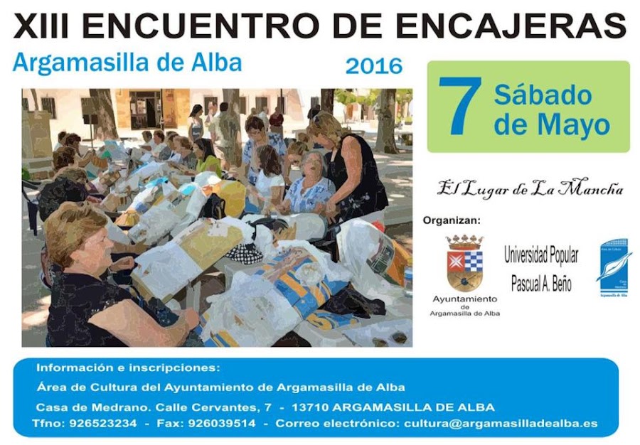 También el sábado habrá reunión de bolilleras en: Santa Anastasia (Zaragoza); Badalona (Barcelona); Palacio de Canedo (Leon); Argamasilla de Alba (Ciudad Real); Padron (A Coruña); Villarobledo (Albacete)Almuñecar (Granada) y Malaga (Cruz del Humilladero)