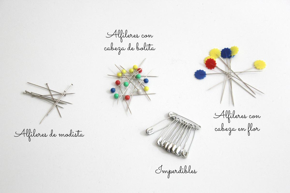 Los alfileres los podéis encontrar en una gran variedad de tamaños, formas y estilos, adecuados para diferentes usos y tejidos. Éstos sirven en general para sujetar dos o más piezas de tela, pero en la confección de prendas de ropa, nos ayudarán a fijar el patrón a la tela que vamos a cortar, e impedir que se muevan. Además, si le damos un uso adecuado, nos pueden agilizar el trabajo utilizándolos como sustitutos del hilván.