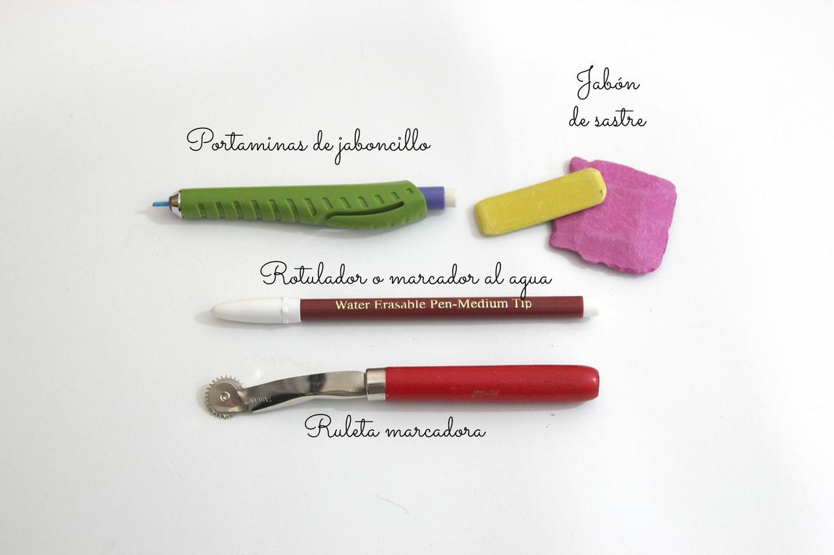 Los marcadores son ideales para marcar el contorno del patrón en la tela que vamos a cortar. Un consejo, aunque estos marcadores se quitan fácilmente, es mejor siempre marcar por el revés del tejido con el que vamos a trabajar. Como todos los materiales de costura, existen una gran variedad, pero la elección de estos va a depender del gusto de cada una.