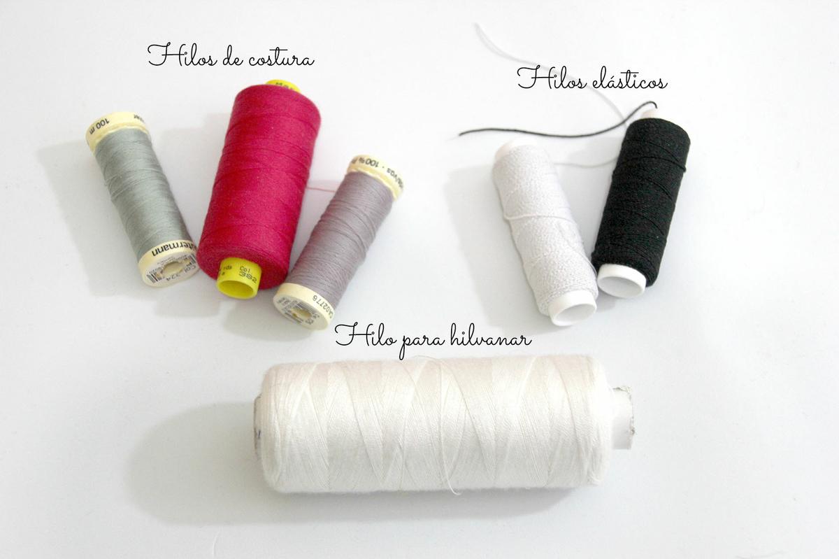 Hilo para hilvanar: Este hilo está hecho de algodón o viscosa. Es un hilo que sólo sirve para hilvanar la tela, ya que es bastante grueso y no nos sirve para realizar pespuntes a máquina. Normalmente se hilvana con un hilo incoloro para que no se destiñan y manchen la tela, pero para telas de color blanco o crudo se pueden utilizar hilos de diferente color para que resalte sobre la tela.