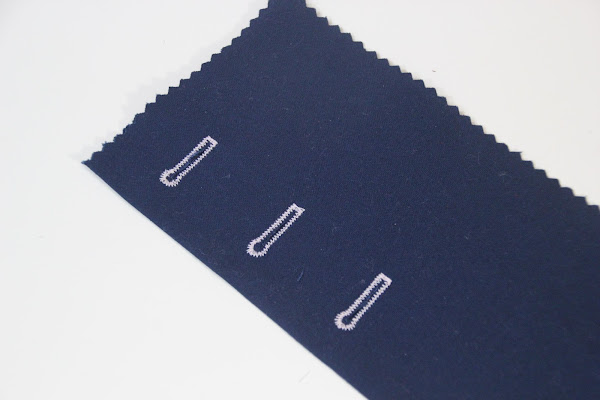 Los ojales quedan casi perfectos!!!! Además este tipo de máquinas de coser, suelen tener diferentes programas para hacer diferentes tipos de ojales. Por ejemplo estos que os muestro a continuación que son especiales para abrigos y chaquetas de traje.