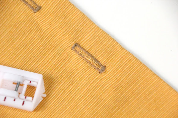 Los ojales en un sólo paso se hacen prácticamente solos, los pasos que os describo en el vídeo se pueden resumir en: colocar el botón en el prensatelas y este a su vez colocarlo en la máquina, ajustar la máquina de coser al programa específico para hacer ojales y pisar el pedal hasta que la máquina lo haga solito.