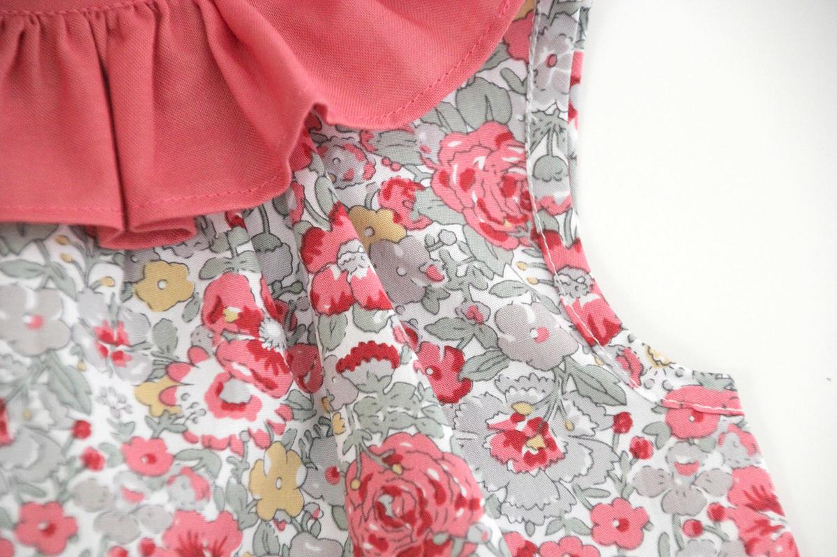 La tela estampada tipo liberty (así se llama este tipo de estampado), es de algodón. La compré en en TRAETELA, una tienda online de telas muy bonitas.